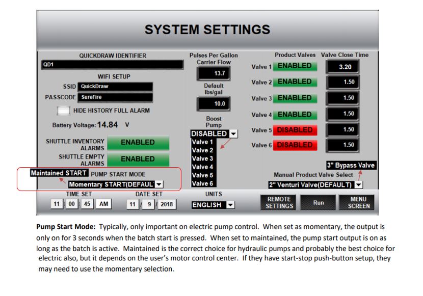 QuickDraw Max Pump Start Setting for Electric Motor Drive Transfer Pump